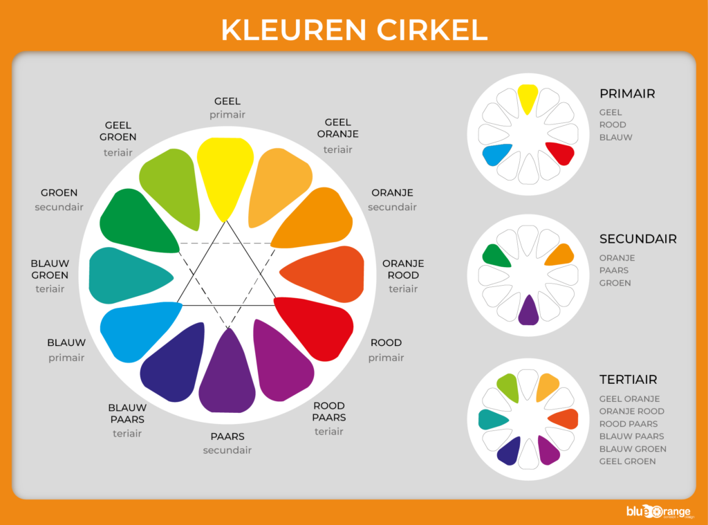 Complementair zijn de kleuren tegenover de primaire kleuren in de kleurencirkel.